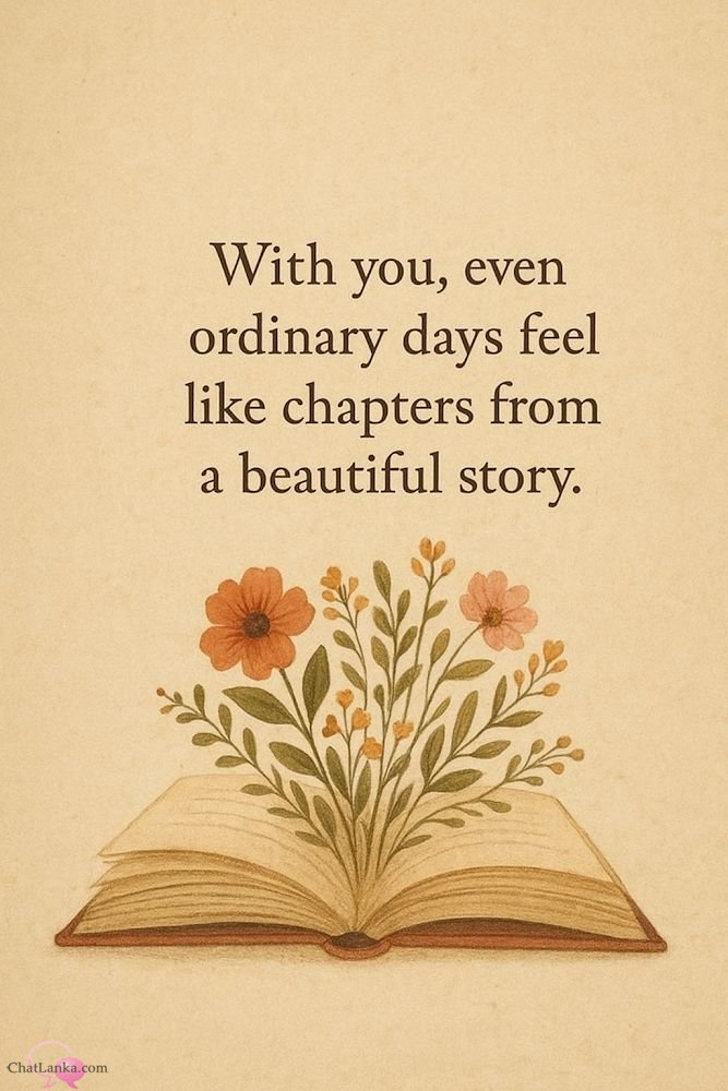A vintage-inspired artwork with a romantic quote about love turning ordinary days into a beautiful story.