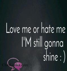 Love or hate me am gonna shine brighter